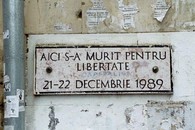 "Here People Died for Freedom Plaque" in downtown Bucharest.
