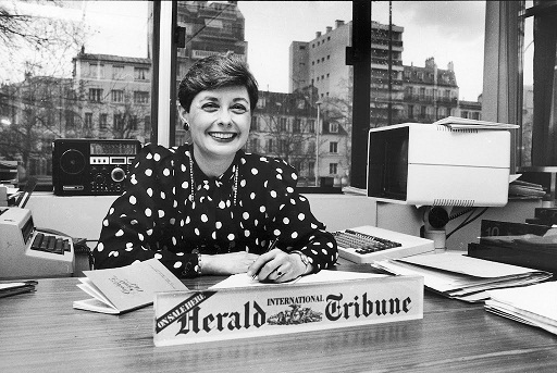 Patricia Wells on the job at the International Herald-Tribune in polka dot St Laurent dress. W hen we landed in Paris, I spoke not a word of French, and since Walter knew at least 100 words and several conjugations, I considered him totally fluent. That gave me the wifely right to demand, “Call the real estate agent (banker, plumber)…. “ And he usually did.