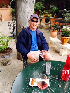 Chris Olsen enjoying a well-deserved glass of ros after a long hike through the Dentelles.