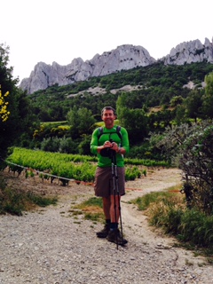 Nick O'Connell hiking through the Dentelles de Montmirail