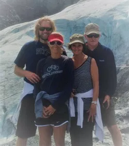 We hike several miles out a rocky path to stand beside a glacier, its white-blue expanse of permafrost streaked with muddy snow mobile tracks. Standing there, teetering on the edge, we contemplate the antiquity of this place, and close up, the uncertainty of a world that from here seems to be seeping away into a pool of muddy water.