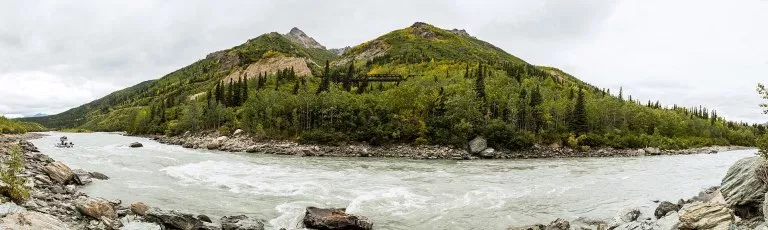 Around us rise the high banks of the Nenana Gorge on one side and the Denali Highway on the other. Created by glacial flow, the Nenana River runs right through the Alaska Range forming a natural path for highways, pipelines, and microwave stations.